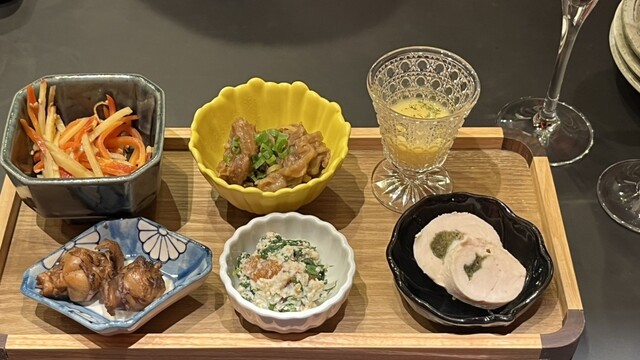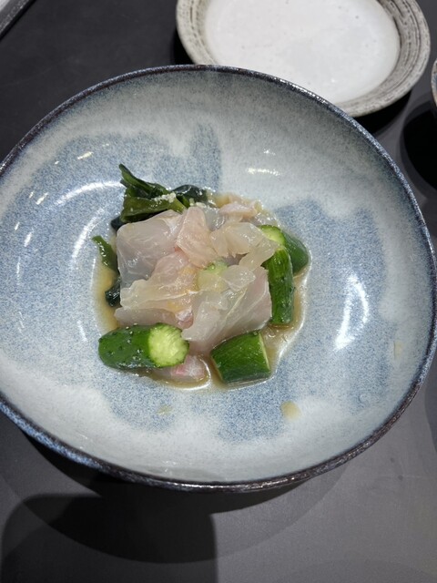 まずいただいた八寸は品のある盛り合わせで、干柿の白和えが特に印象的。三浦野菜サラダは3種の発酵ドレッシングがどれも香り豊かで、素材の...
