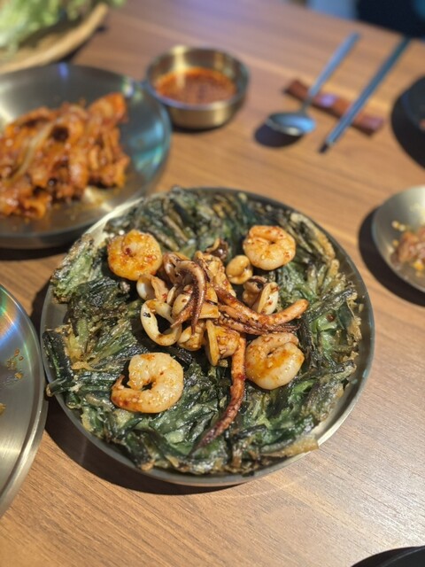 【超人気】パリパリのニラチヂミと別焼きの海鮮がたまらない