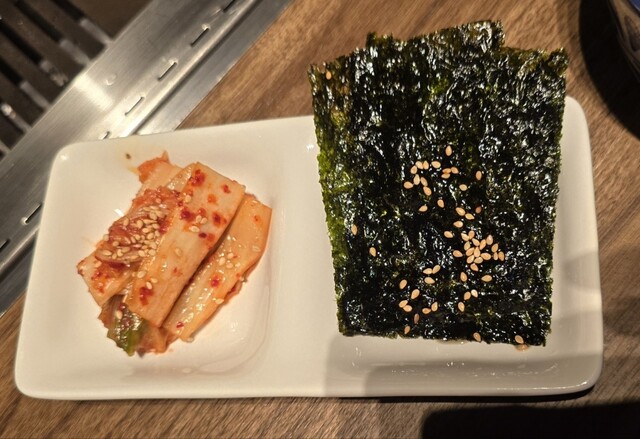 お店は池袋駅1b出口の地上に上がる 階段途中に入口があり、 秘密基地に潜入するかのような ワクワク感が楽しめました! 秘密の扉を開けると広々とした大人の空間が広がり 内観はところどころ緑もあって居心地もいい! この日は池袋オープン記念コースを中心に 少しアレンジしたものを友人が頼んでくれていました! 今回いただいたのはコチラ! ◆キムチとナ... 詳細を見る