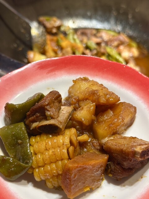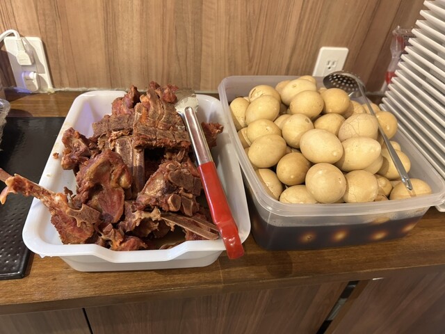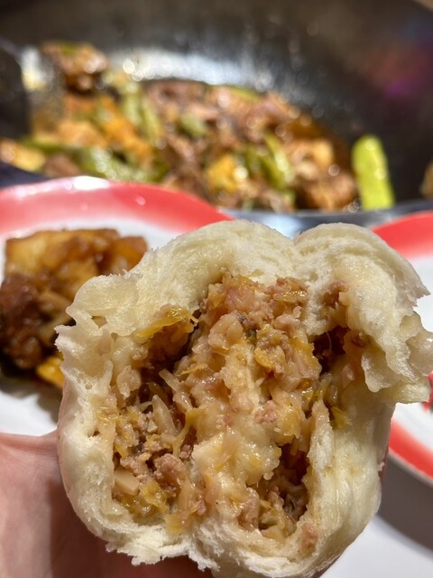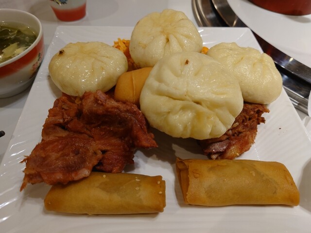 炒飯、自家製肉まん、大きな骨付きリブなど盛りだくさん♪