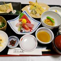 ぶり大根/かき揚げ/お刺身/ひじきの小鉢/お漬物/味噌汁/ご飯/デザートの定食...