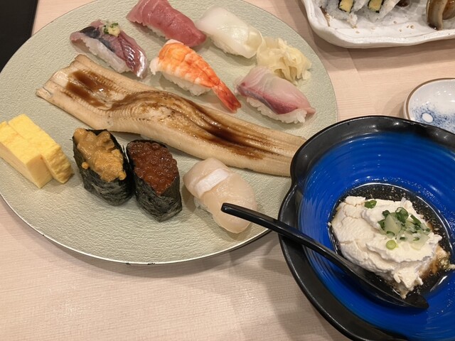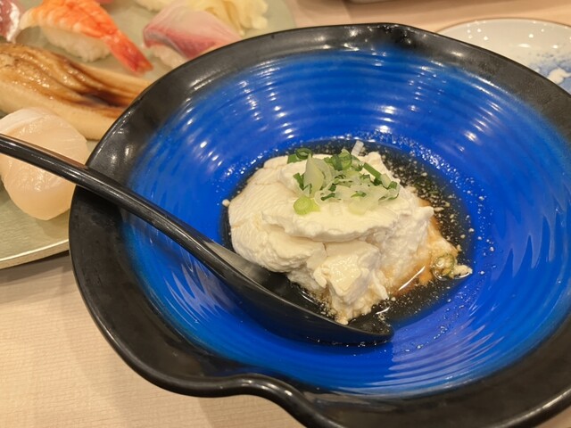 だいたいお寿司の時は10貫程度ではお腹が空くところ、穴子ロールもサブメニューとしてあるのでそっちも注文することにした。ランチでは茶碗蒸しか豆腐が選べるので自家製豆乳豆腐にした。