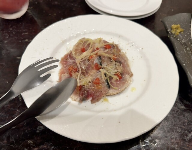 程よい味付けで食べやすく仕上げられたスマカツオのカルパッチョ。