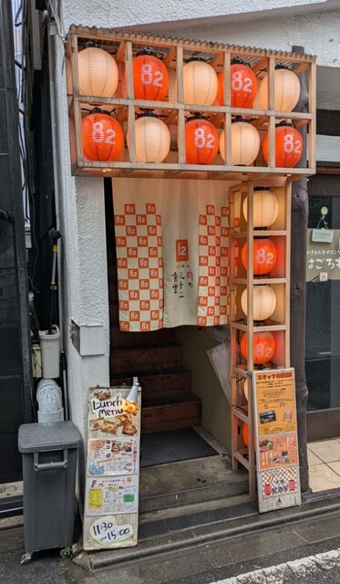 場所は駅前の信号を北側に渡り「寛永堂」の先を右に折れて少し行った所で、表に派手めに提灯が飾られた木の階段を上がった2階。