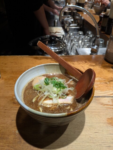 平日の12時、店内は満席でしたが行列は無く、5分ほど待って入店。 いつもここに来るとつけ麺を選ぶのですが、今日は「正月限定、味噌ラーメン(1400円)」に惹かれてこちらをチョ... 詳細を見る