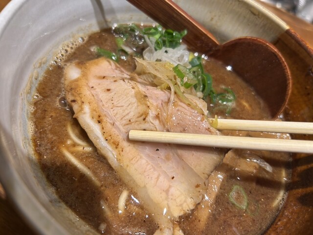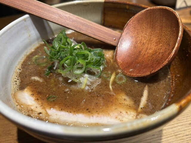 月曜日の12:45過ぎに到着。並ばず入れました。限定の和歌山こってり1,200円税込也を選択。 5分ほどで着丼。 スープをひと啜り。エッジの効いたカエシの味わいに豚骨のまろ... 詳細を見る