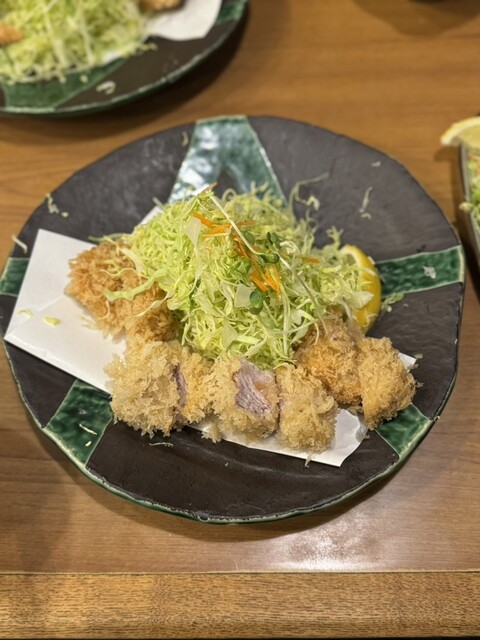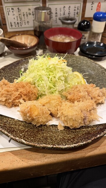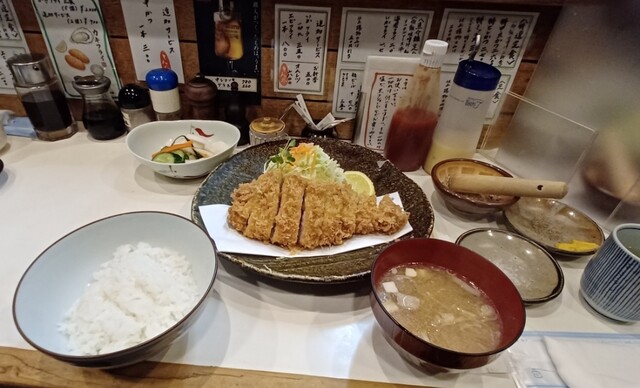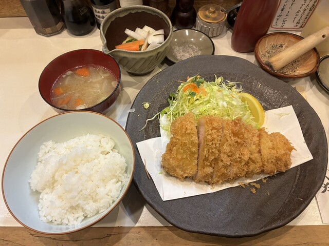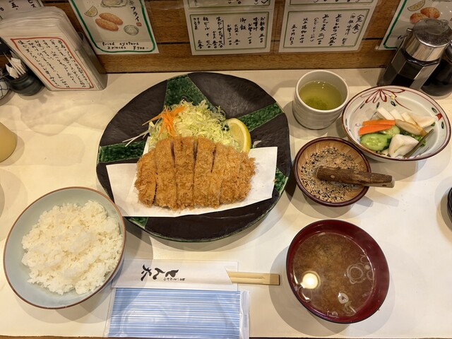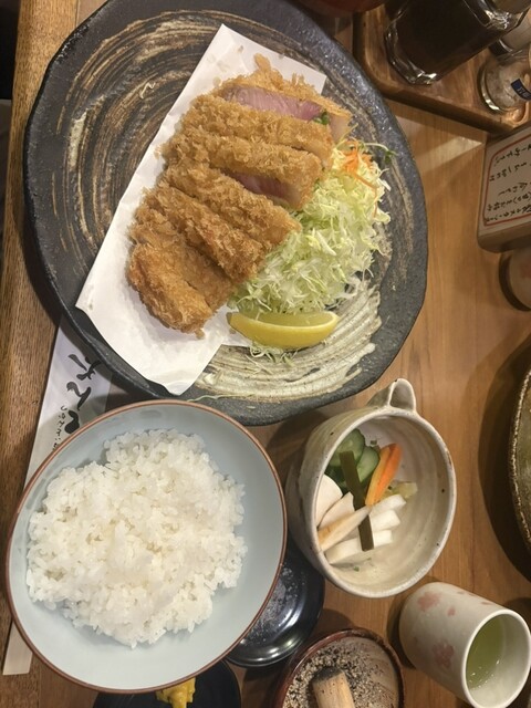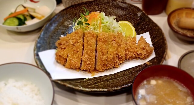 特ロースカツ定食を注文しました。低音で揚げているのか肉質がとても柔らかく噛むと脂の味がジュワッと広がります。味噌汁はしじみ汁にしました。出汁が出ていてほっとする味です。ご馳走様でした。