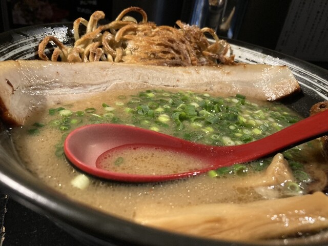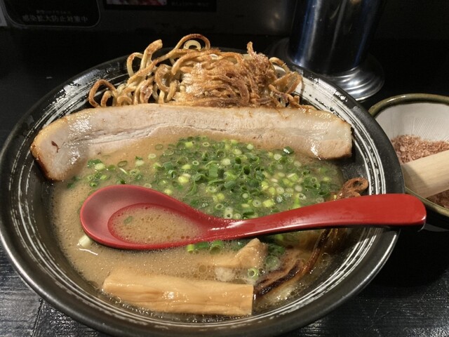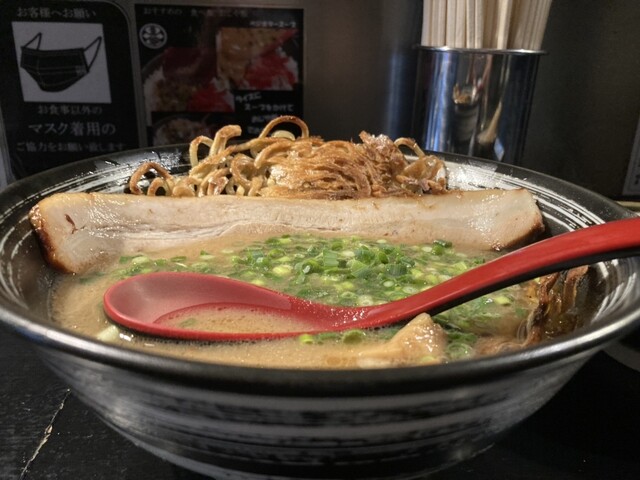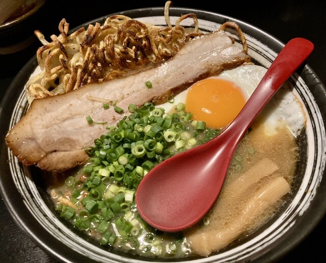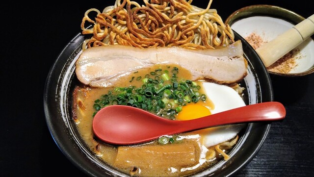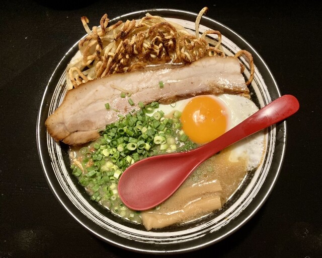 茹でた麺を鉄板で片面香ばしく焼き、丼に盛ってスープを入れた新感覚ラーメン、「焼麺(やきめん)」をメインに提供する店。 |