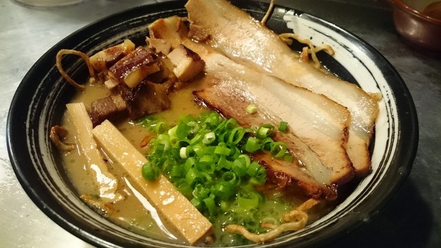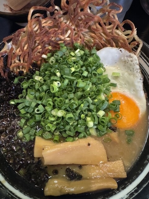 焼麺をラーメンに入れるという独自のスタイルのラーメン。