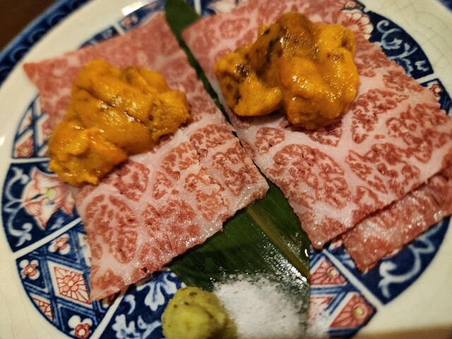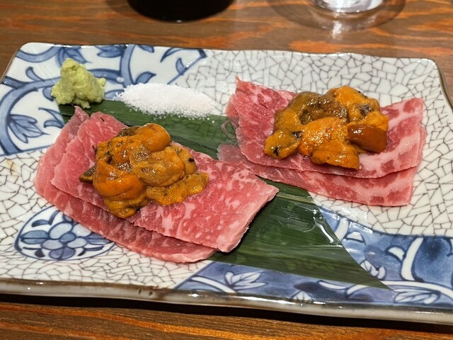 本物の雲丹と最高尾崎牛の組み合わせ!大人気「うにく」780円
