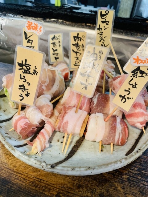 ◉超人気『ベジトン(野菜肉巻き串)』は見た目もお腹も満足度100%¥250-