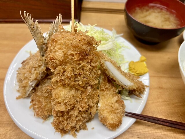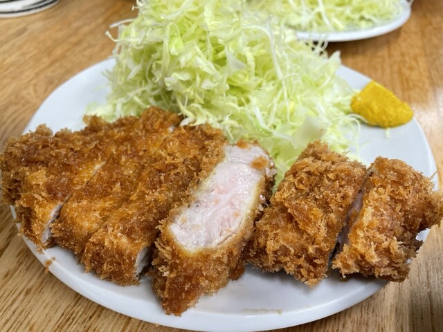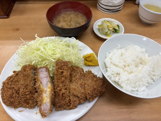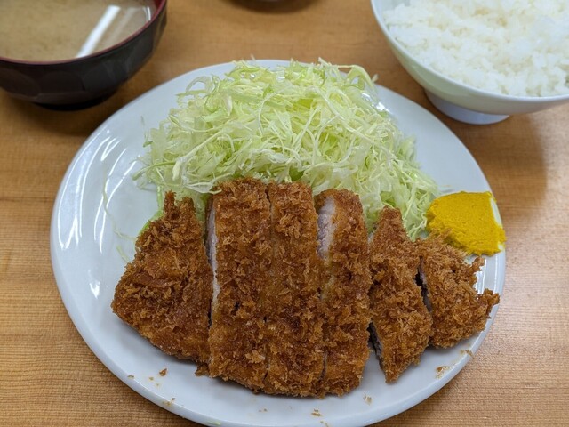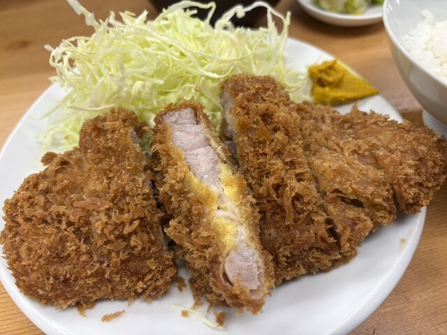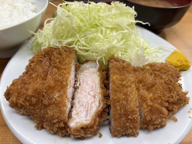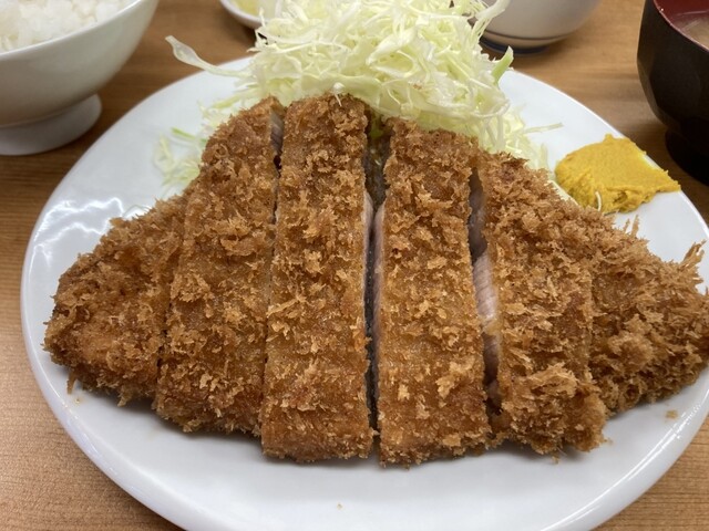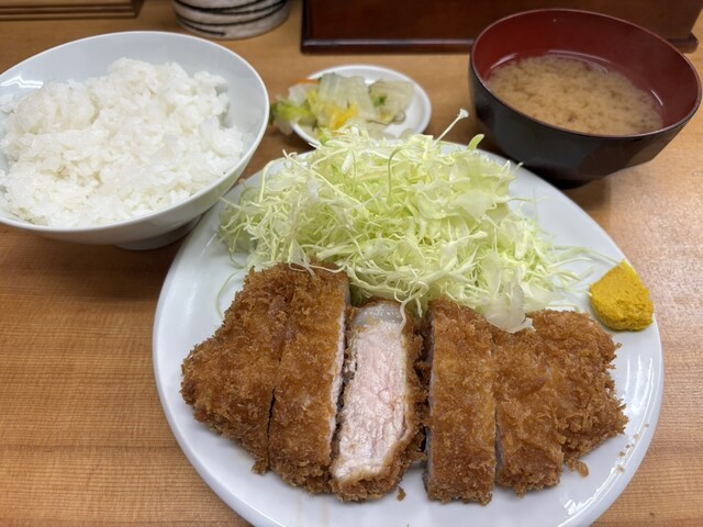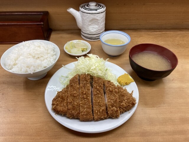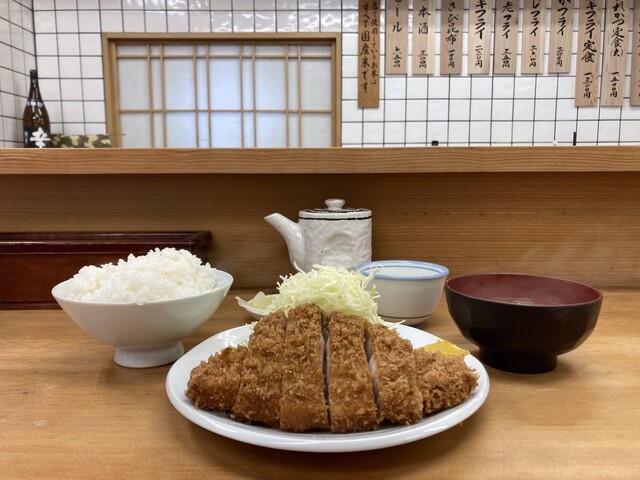 平日の午後8時半すぎ 朝からろくに食べていない お腹は当然ペコペコ なので気分は飲みよりご飯 さかえ通りのとんかつ屋さんへ カウンター席に数人、テーブル席にも1組 明るく開放的なカウンター席の中ほどに座り ロースかつ定食大1200円 瓶ビール600円をオーダー 3人の店員さ... 詳細を見る