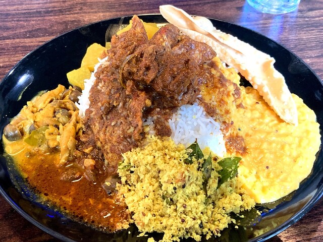 祝日の17時過ぎに訪問。夕食には早い時間だからか、店内は空いてました。こぢんまりとしたお店で1階は2名席が4つのみ。地下フロアにも席があるようです。 今回はスリランカカレーの... 詳細を見る