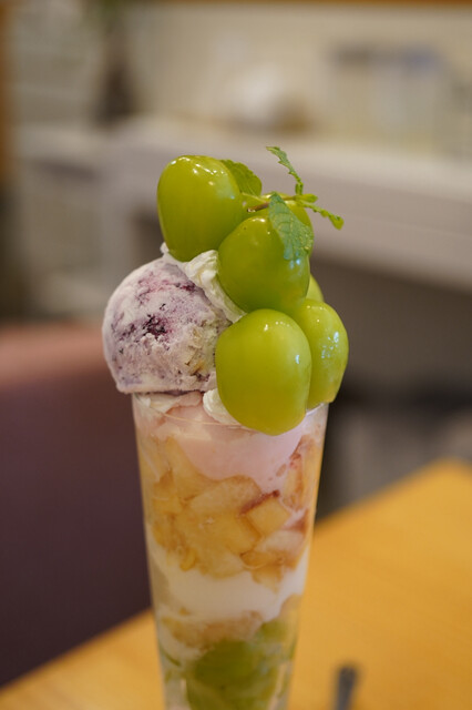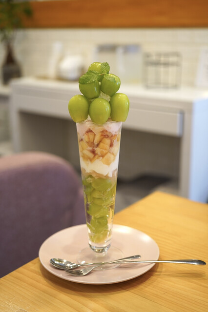 2ヶ月ぶりの訪問。 桃に続いてシャインマスカット最盛期に入って来たようなので、LINEで予約を取ってから伺いました。 この日は午後から東京都内は雷鳴と共に豪雨に見舞われましたが、何とかその前に滑り込み。14時過ぎに着くと先客は無く、ペルママさんにご挨拶してから左側の2人掛けテーブル席に腰を下... 詳細を見る