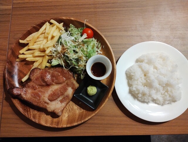 ランチメニューはハラミステーキプレート、ポークステーキorチキンステーキ(この日はチキン...