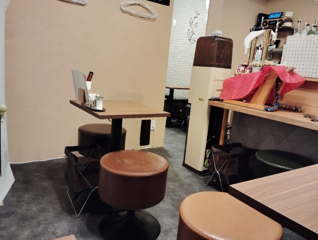店内は入ってすぐ4名テーブル2卓、奥にキッチンと2名×2と4名テーブル席がある。ランチの13〜14時は学生は学割で200円引きになる。