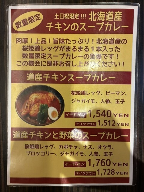 数量限定の言葉に惹かれて、北海道産チキンスープカレーに!