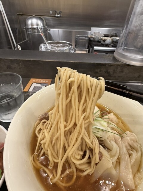 麺を持ち上げ、...