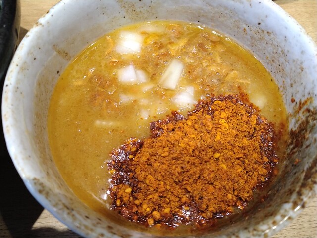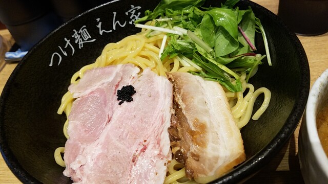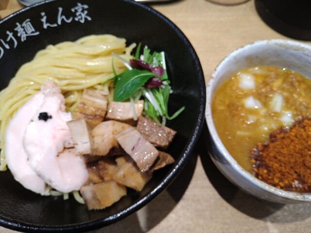 • つけ麺 えん家 - 辛つけ麺(並)、豚トロチャーシュー