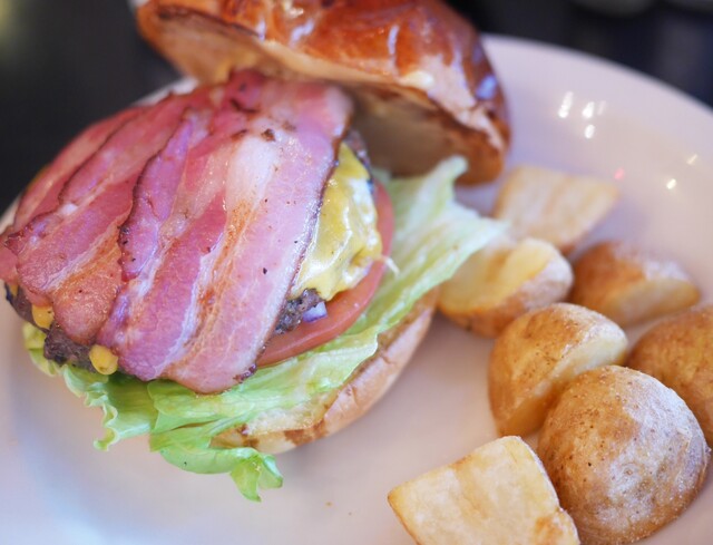 平日の19:30頃に訪問しました。 店内は9割ほど席が埋まる状態で、厨房の目の前にあるカウンター席へ案内していただきました。 オーダーしたのは、 ■ザ・グレート和牛チーズバーガー(¥1,780+税) ポテトは、皮付きor細切りから選べます。 今回は皮付きにしました。 ■自家製ジンジャ... 続きを読む»