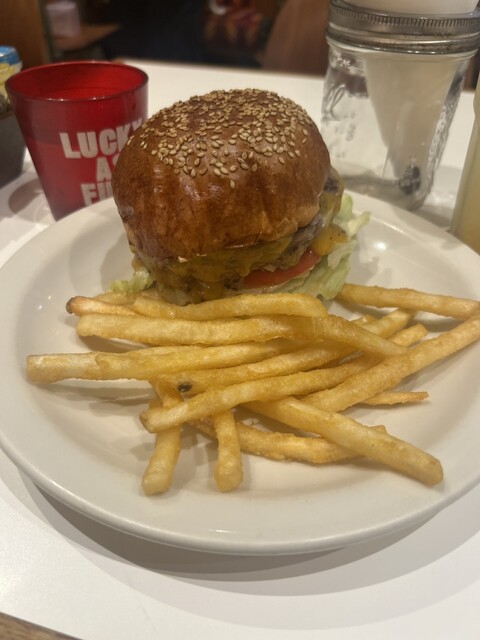 店内はアメリカンダイナー風の装飾に賑やかな音楽がかかっていました。