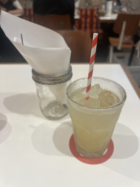 ダブルチーズバーガーとレモネード(炭酸なし)を注文。はじめにレモネードの方が運ばれたのですが、レモンの果汁を感じつつしっかり甘みもある,大変美味しいドリンク!かなり甘めではあるのかな