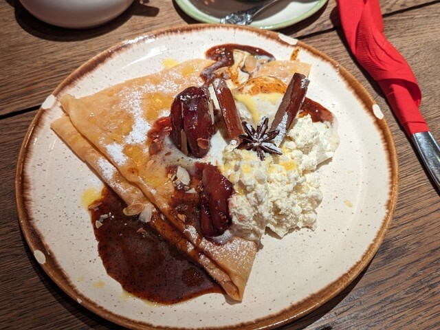 #今日の甘いの 、 #lafeedelice の #季節のクレープ #アールグレイキャラメルといちじくの赤ワインコンポート 。
