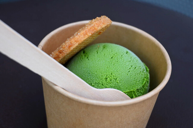 表参道にあり、京都・和束町のシングルオリジン抹茶を使った日本茶スイーツが楽しめるカフェ。百名店にも選出。