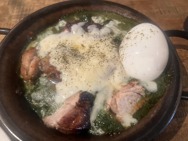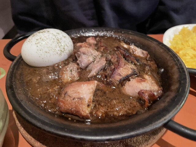 平日の14時過ぎに訪問。満席で店の前には二名の待ち人。10分くらいでお店の人がオーダー取りに来てくれる。チキンカレーのトマトを注文。店内の雰囲気はおしゃれ。熱々の小鍋?フライパン?で提供されるカレーは...