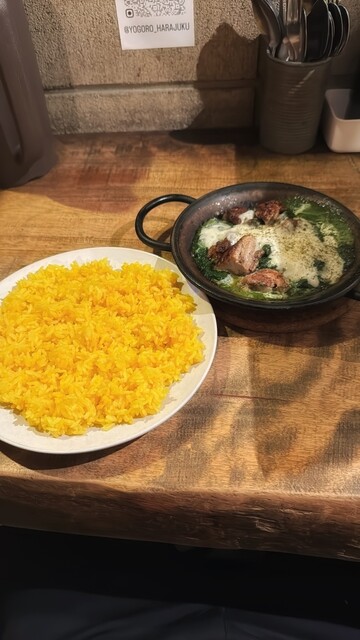 北参道駅から徒歩5分。平日19時に人気カレー店の「ヨゴロウ」さんに訪問。店内は満席で、外のイスでしばし待機。5分ほどでカウンター席に案内していただきました。