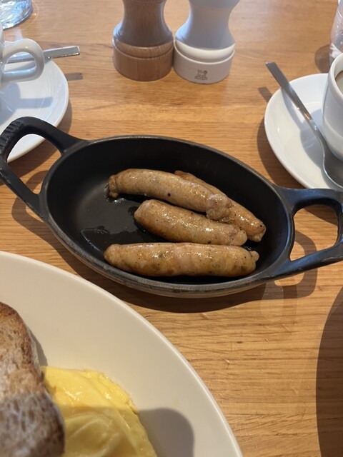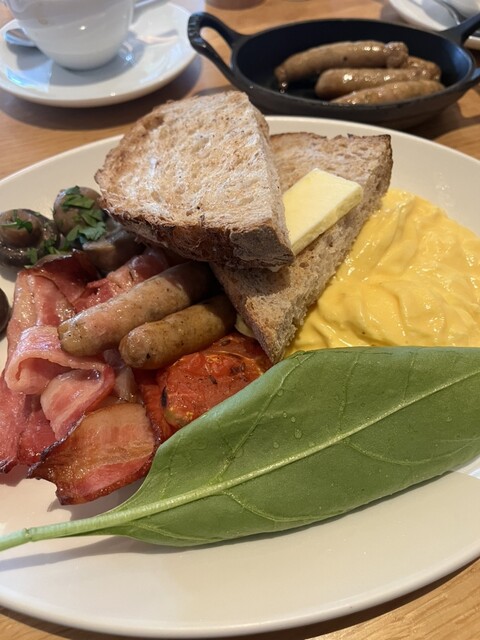 ハラカド七階。朝食で利用。シンプルなバタートースト、ウインナー、ベーコン、マッシュルーム、スクランブルエッグのセット。素材そのままをシンプルにワンプレートで。ボリュームしっかりありお腹がいっぱいになり...