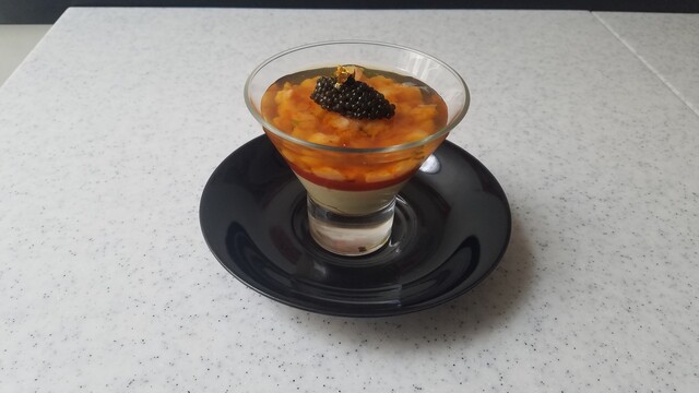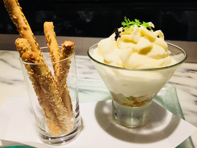 甘海老とホタテのタルタル アスパラのムース (by お店)