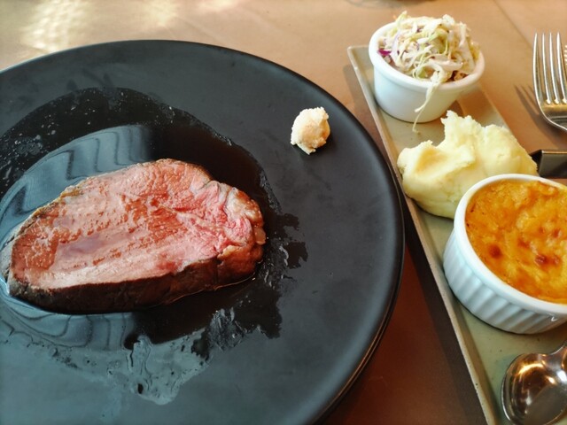 ちゃんとしたローストビーフを食べたくてやってきました♪ ●スパーリング(選べるドリンク) ●季節のサラダ ●コーンポタージュ ●赤城牛ローストビーフ100g ●マッシュポテト・コールスロー・コーンプディング(選べる付け合せ) ●パンorライス ●ベリーのシャーベット ●珈琲or紅... 詳細を見る