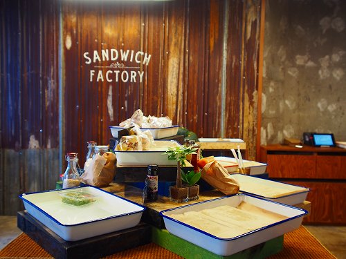店内の中央にサンドイッチを置くスペースがあり