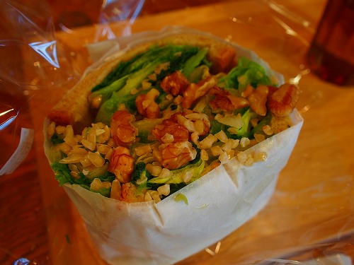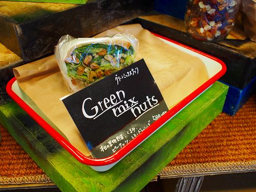 暑い日だったのでさっぱり系を、とグリーンミックスナッツのサンドイッチを(500yen)