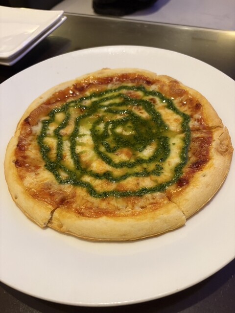 マルゲリータを頼んだが、冷凍ピザにバジルソースを追加しただけのクオリティ。これに1700円は高すぎました。