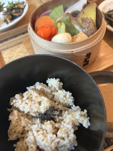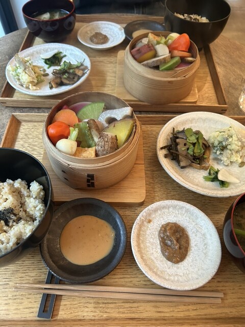 平日13時前、予約なしでタイミングよく入れた٩(ˊᗜˋ*)و 接客はみなさん丁寧で好感度高いわね♡ 日替わり一汁三菜は揚げ出し豆腐だったのでやめて、せいろ蒸しにしたわ ※四毒抜き ごまだれと味噌煮つけてたべるんだけも、味噌が美味しい。 おうちでもポン酢だけでなくお味噌でせいろ蒸し食べて... 詳細を見る