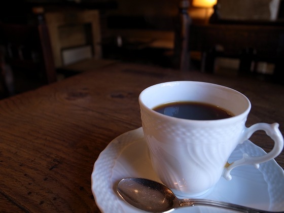 薄暗くて落ち着いたアンティーク調の空間で、ゆったりとコーヒーを楽しめるお店です。