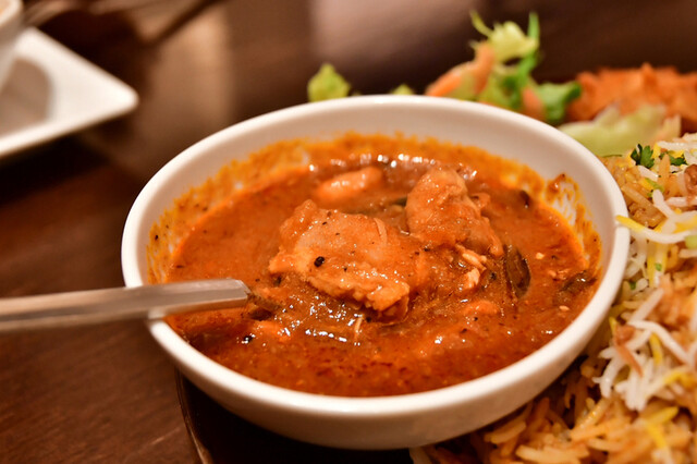 表参道のビルの地下にある北インド料理の店。少しお高いレストランの装いだが、お値段はあまり高くない。18時の夜オープンとともに入店すると予約はなくてもすんなりと入ることができた。予約がなくてもあまり混雑はないようだ。他に客が2組ほどいた。店員が丁寧に席に案内してくれる。各テーブルにはテーブルクロスがか... 詳細を見る