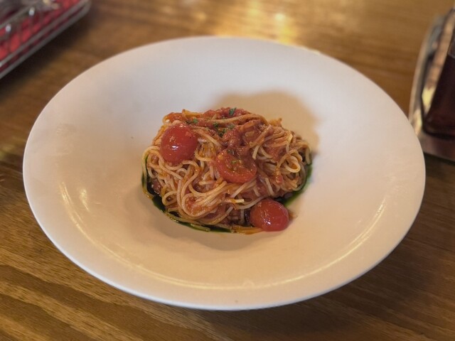 土曜の15時前、ランチギリギリで入店。 1階フロアは席がかなり埋まっていて、ランチからカフェ利用をしている方が多く見受けられました。 ランチセットは、税込2,000円程度のものから3種類あり、メニューによって追加料金が発生するシステムでした。 連れがピザを食べたいとのことだったので、別で通... 詳細を見る