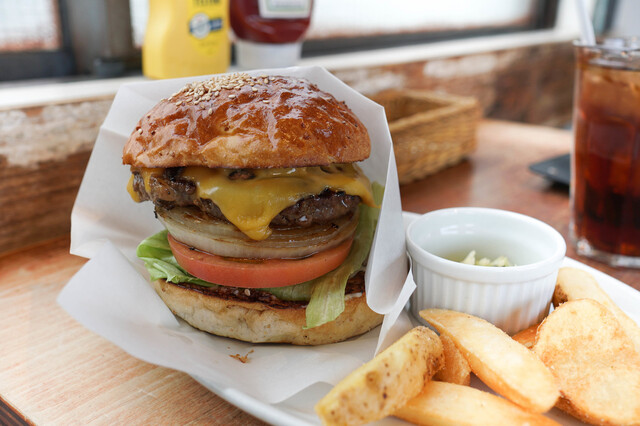素材の良さに妥協せず、冷凍の肉は使いません。その日使う分だけお肉をミンチしています。オーダーが入ってから、炭火でじっくり焼き上げます。特別なことではありません。素材の美味しさを味わって頂く事に、手間は惜しみません。美味しさだけでなく、安心安全にもこだわった炭火焼バーガーをお楽しみください。