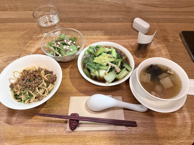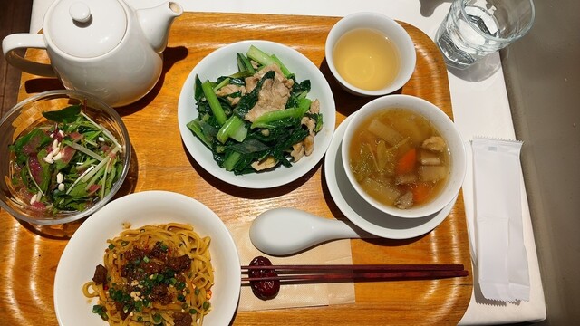 担々麺と野菜炒めにしましたが、お野菜多めでヘルシーな感じでした。