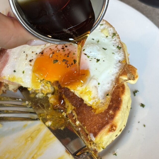 表参道でランチって意外と困ること多くて、 ここは美味しいしお洒落だけど 1人でも入りやすい雰囲気でお気に入り ☑︎ パンケーキベーコンエッグ ¥1500 ☑︎ ミー... 詳細を見る