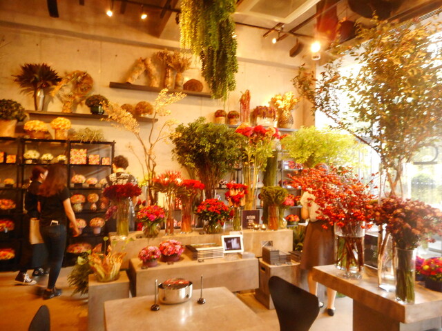 店の左手奥にはカフェが。軽い食事とドリンク。ただ皆さん花よりもケータイ、スマホばかりで。いったい何を楽しんでいるのか。花には興味がないのだろうか。まあ、訪問することに意義があるのかも知れない。この南青山でも際だった華やかさ。なので。