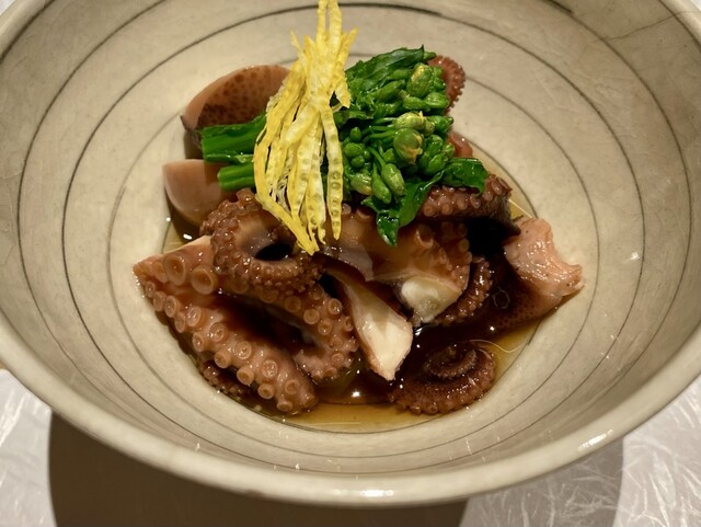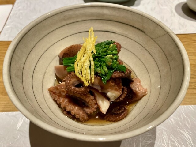福井県ならではの高級食材「ガサエビ」「のどぐろ」「越前がに」などの新鮮な食材を、確かな職人技で贅沢な一皿に昇華。朝届いた旬魚のお造りや、市場に出回らない天然鰻も愉しめます。コースはアラカルトよりもお得に味わうことができ、当日予約が可能なプランもご用意。季節を感じられる「特別コース」、料理長おまかせの「越前コース」などがございます。オープンキッチンが目を引く店内には、カウンターや個室も完備しました。