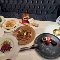 シェフこだわり旬の食材を使用した和洋創作料理コース 前菜からメインをシェアしてお召し上がり頂くコース。 コースを愉しんだ後は、メッセージ入りのアニバーサリープレートをご用意 大切な方との特別な日をお過ごしください。