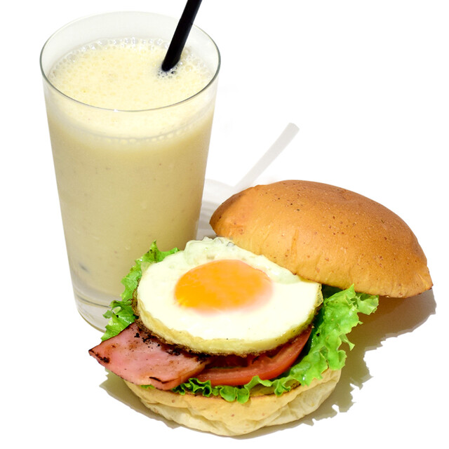 アボカドわさびチーズバーガーと苺スムージー (by alissa51115)