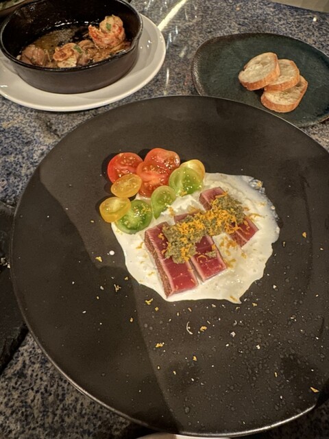 鮪のロースト×グリーンタプナード、柑橘が香るモッツァレラクリーム。...
