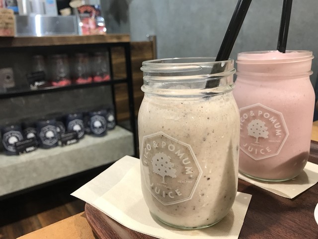 ◆表参道駅から4分◆青山通り沿いにある本格スムージー専門店「フィコアンドポムム ジュース 青山店」!コンセプトは「ヘルシーファーストフード」♪■素材も有機野菜、無農薬、減農薬を一部使用!安心安全の濃厚スムージーを是非!クラシックスムージーやホットスムージー、ロージュースなどで、栄養価の高い「ケール」を「おいしく」摂ることができます!また、少し肌寒い日には、アップルシナモンのホットスムージーなども♪...■当店一番人気の"CLASSIC SMOOTHIES"ラインナップでは、質感と温度帯を、お選びいただけます。その日の気候や気分に合わせて、リッチで濃厚な質感の"RICH"スタイルか、なめらかでやさしい"Light"スタイルか、お選びいただけます。ヘルシーなイメージだけが強いスムージーを、おいしく、楽しく、お気軽に、いろいろな飲み方で、お楽しみいただけます。