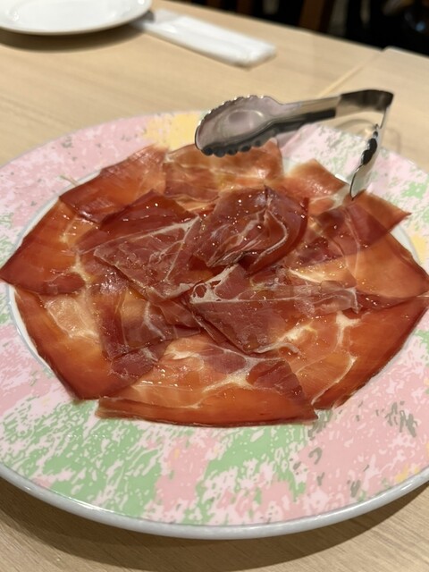 まず最初に運ばれてきたスペイン産生ハムがとても美味しく、塩気が上品でワインにぴったり。